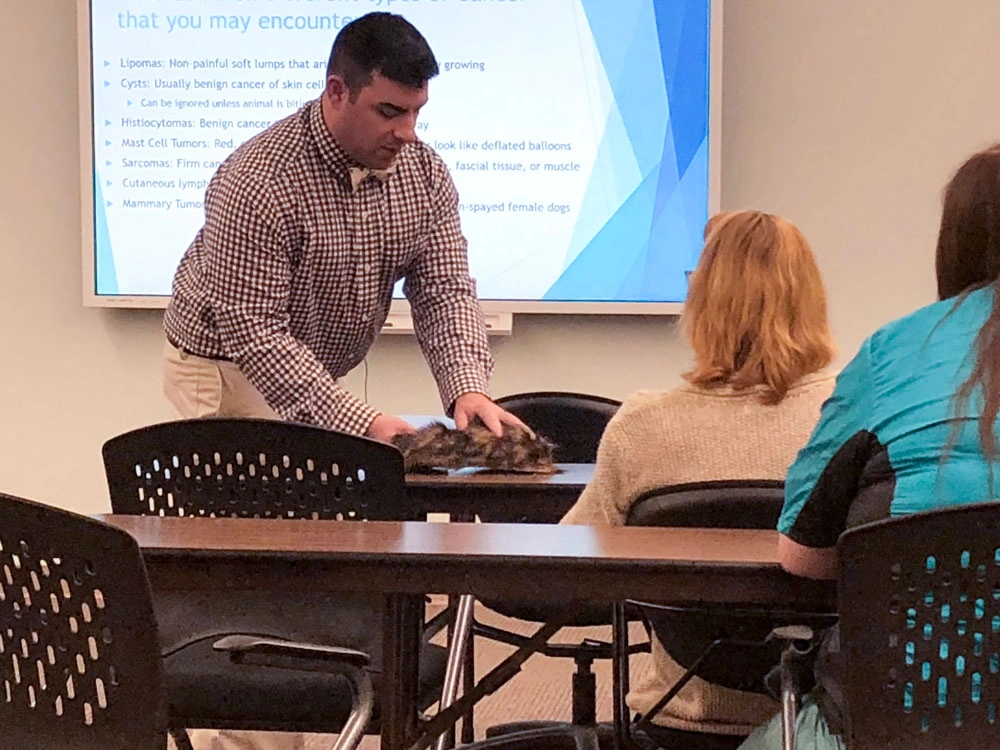 Continuing education programs – CEs – are frequently held at our Pieper locations to help keep our staff educated on the latest news and updates in veterinary medicine. In addition to learning from our peers, Pieper also operates as the teaching hospital for Middlesex Community College’s Veterinary Technology program, where staff help new students learn what it takes to be a veterinary technician. CEs are also offered to the public to educate curious pet owners and pet professionals on how they can help their pets live long, healthy lives.